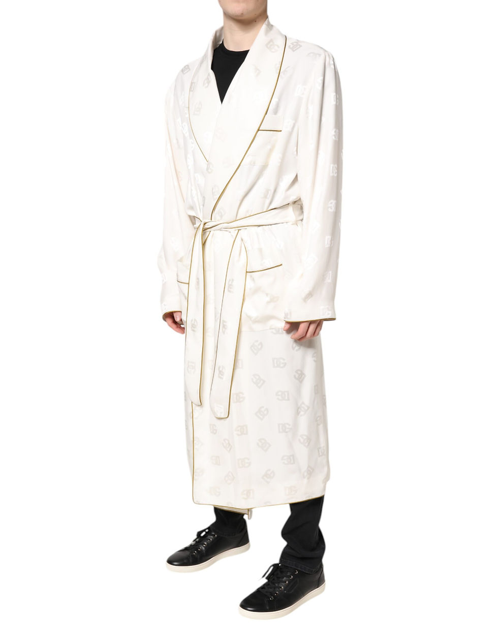 Dolce & Gabbana Ivory Silk Logo Men Wrap Robe Coat Jacket